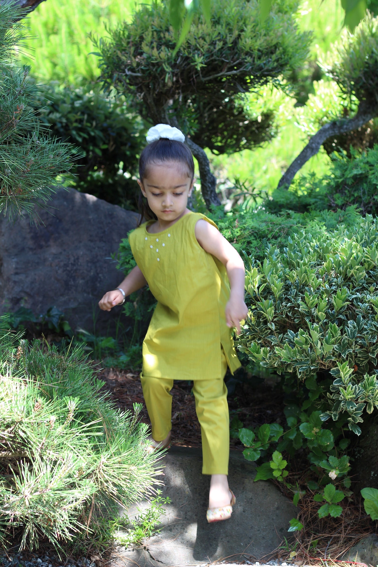 Pair with the Pista Peda Boys’ Kurta Set for a coordinated sibling look.