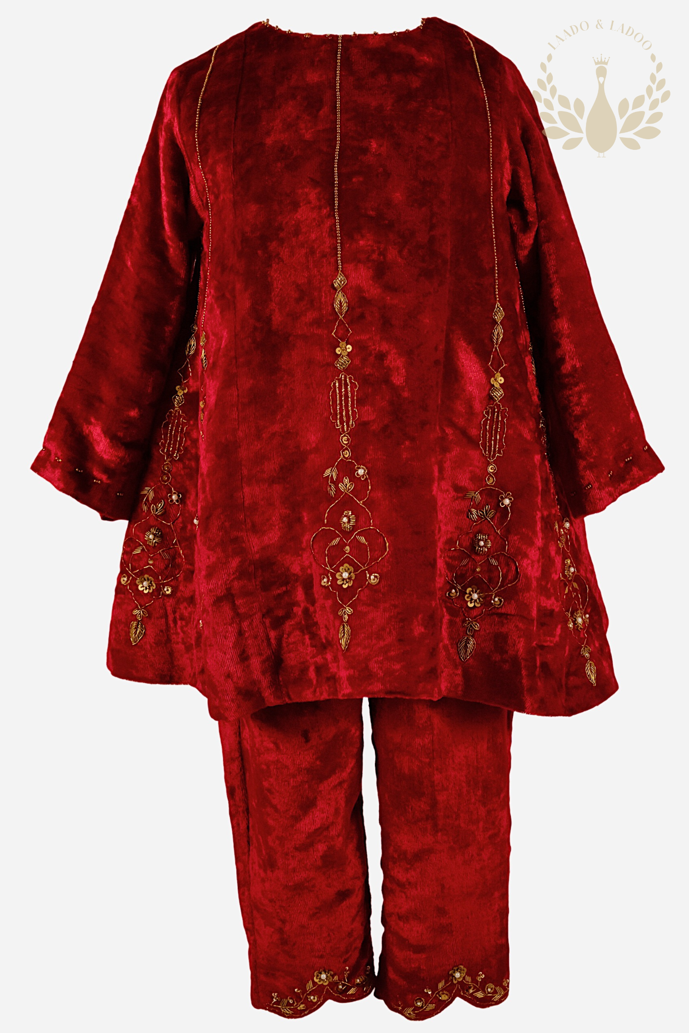 Fabric details: Kurta & Pants - Velvet, Lining - Cotton Voile; Dupatta - Organza